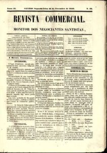 As mercadorias exportadas pelo Brasil em 18 de novembro de 1850. Do jornal Revista Comercial. Edição de 4 páginas